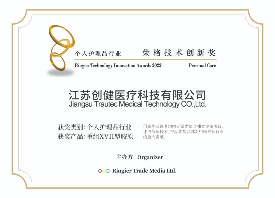 喜報|金獎!創健醫療重組XVII型小分子膠原蛋白再獲殊榮