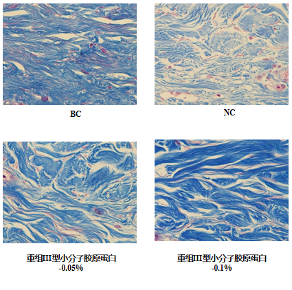 圖:濃度 0.05%和0.1%的重組III型小分子膠原蛋白對膠原纖維含量有顯著提升作用